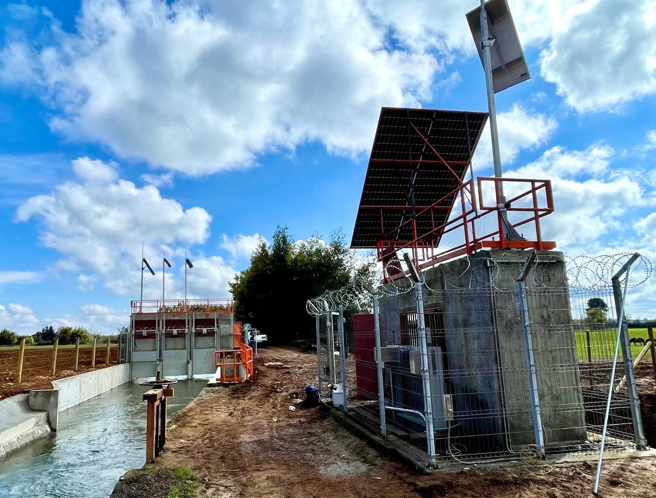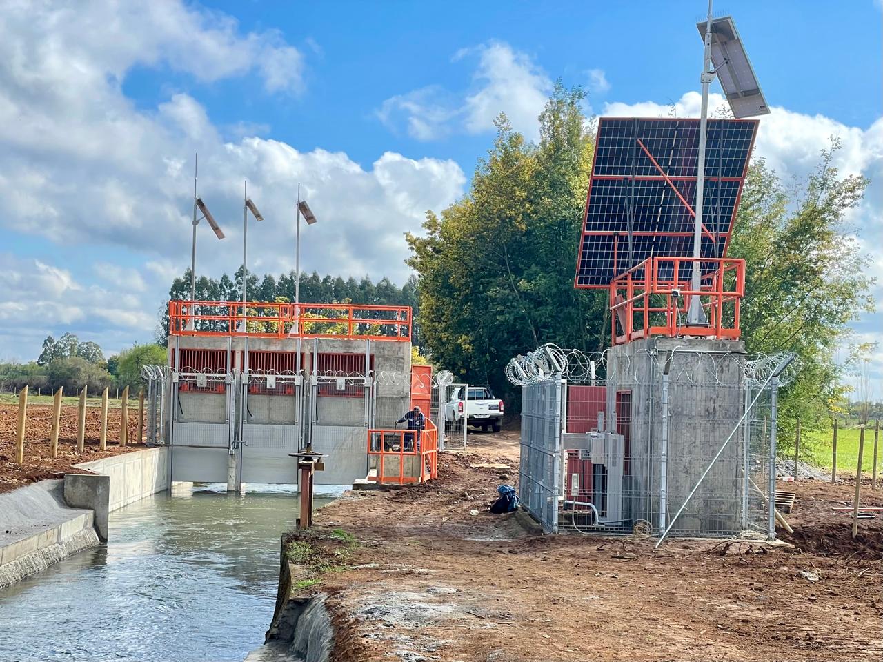 Imágenes correspondientes al Proyecto Codigo 54-2023-08-005 Automatización de compuertas y telemetría de canal Bío Bío Sur Derivado Licura Munilque, Importante obra de seguridad que nos permite tener un mejor control de caudal ante las repentinas crecidas de caudal producto de las lluvias y temporales.